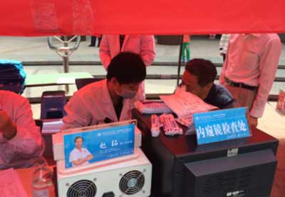 图为活动现场西安中大医生在给社区民众做内窥镜检查