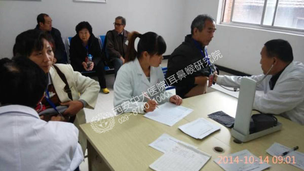 近日,西安中大耳鼻喉医院正在举行“中大公益在行动”活动,为了响应陕西省卫计委号召,于2014年10月14日在院内为陕西广播电视报一生活读者生活馆的老年朋友进行耳鼻喉健康检查,医护人员的细心及耐心赢得了前来体检人员的高度好评。