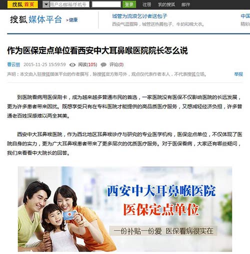 西安中大耳鼻喉医院,作为西北地区首家耳鼻喉诊疗与研究的专业医学机构,医保定点单位,不仅体现了医院自身的实力,更为广大耳鼻喉患者带来了更多层次的优质医疗服务。对于医保看病,大家还有哪些疑问,我们来看看中大院长的回答。