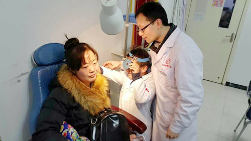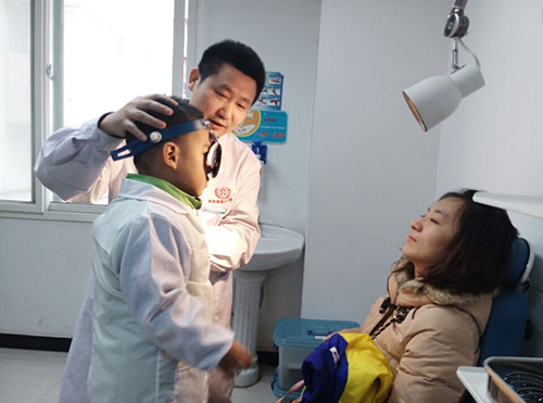 讲课结束后,所有儿童每5人分成一组,由西安中大耳鼻喉医院医护人员带领,分别进入各科室进行“小小医生”职业体验,各个诊室医助一对一教导小医生使用额镜、压舌板帮父母检查,让小朋友们过足医生瘾。