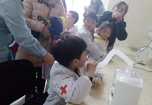 小朋友互相尝试做雾化
