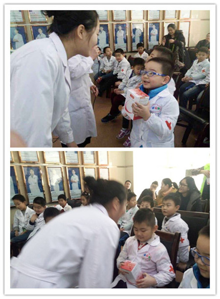 讲课结束后,所有儿童每5人分成一组,由医护人员带领,分别进入各科室进行“小小医生”职业体验。
