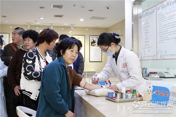 3月2日,医生正忙着在给居民做身体检查。在全国第17个“爱耳日”期间,陕西省聋人协会联合西安中大耳鼻喉医院,免费为居民和残障人士做身体检查,同时义诊到社区,方便居民和残障人士了解自己的健康状况,为健康保驾护航。实习生 柯希飞摄
